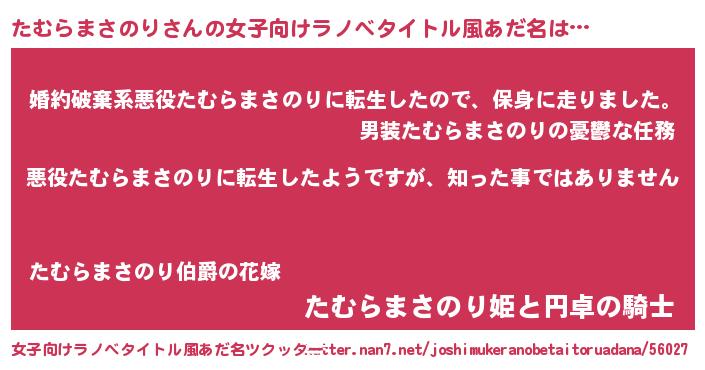 | 胡散臭い通販商品みたいなあだ名 | 『あなたにだけ特別に提供する限定10本のレアな日本酒…その名も「たむらまさのり」』 |