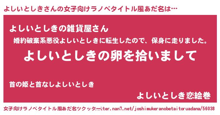 | 意味不明あだ名 | 『とにかく怪しいよしいとしき』 |