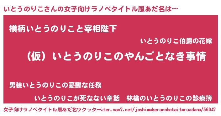 | 男性向けラノベタイトル風あだ名 | 『いとうのりこの憂鬱』 |