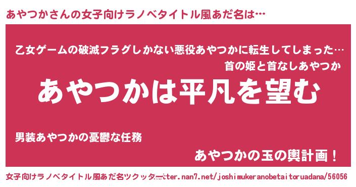 | 胡散臭い通販商品みたいなあだ名 | 『信頼と実績のペンダント…その名も「あやつか」』 |