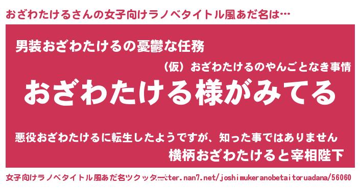| 男性向けラノベタイトル風あだ名 | 『おざわたけるの嫁は女の子じゃないと思った?』 |