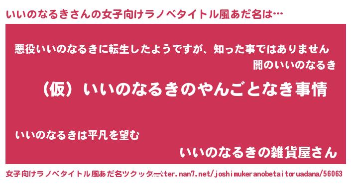 | 男性向けラノベタイトル風あだ名 | 『いいのなるきの憂鬱』 |