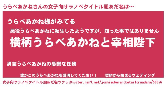| 男性向けラノベタイトル風あだ名 | 『うらべあかねに滅ぼされるだけの簡単なお仕事です』 |