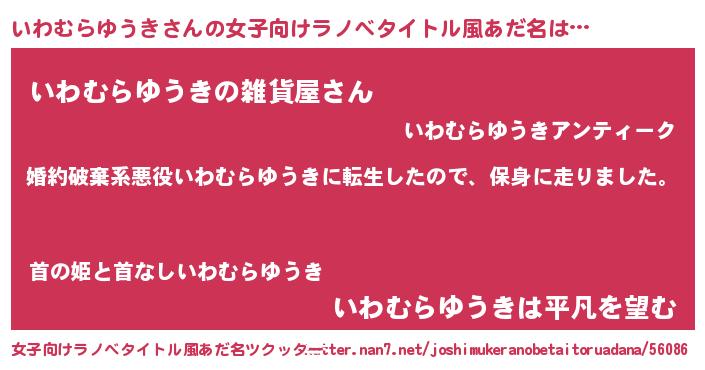 | 男性向けラノベタイトル風あだ名 | 『イワムラユウキスレイヤー』 |