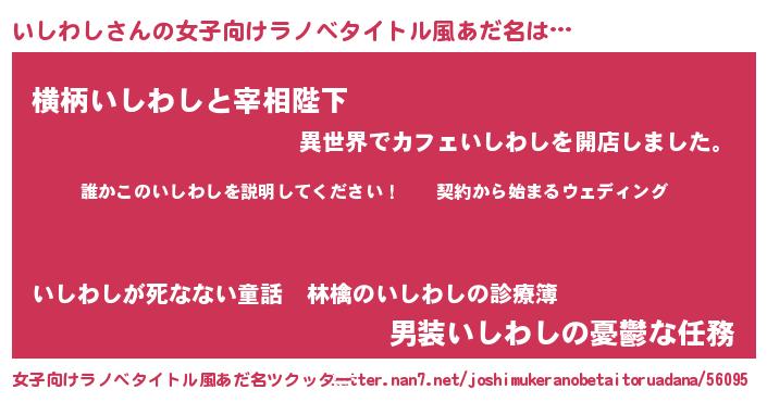 | 男性向けラノベタイトル風あだ名 | 『イシワシアートオンライン』 |