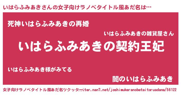 | 男性向けラノベタイトル風あだ名 | 『いはらふみあきという概念が存在しない退屈な世界 』 |