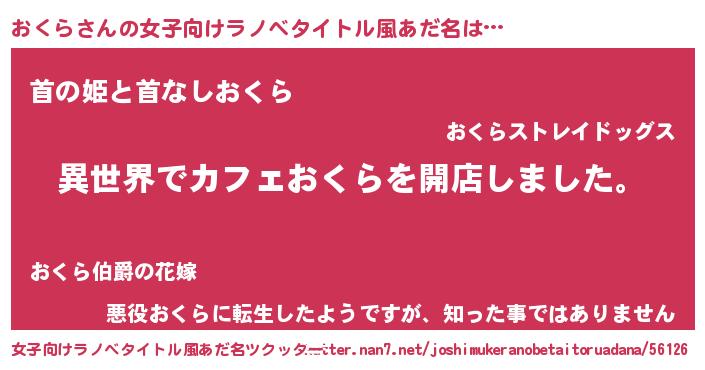 | 男性向けラノベタイトル風あだ名 | 『誰もが恐れるあのおくらが、ぼくの専属メイドになるようです。』 |
