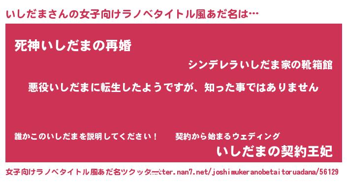 | ヘコむあだ名 | 『いしだま(小並感)』『いしもー』 |