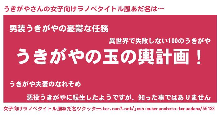 | 胡散臭い通販商品みたいなあだ名 | 『あなたにだけ特別に提供する100年もののヴィンテージワイン…その名も「うきがや」』 |