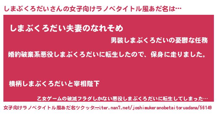 | 胡散臭い通販商品みたいなあだ名 | 『100人中100人が認めたマグネット磁石…その名も「しまぶくろだい」』 |