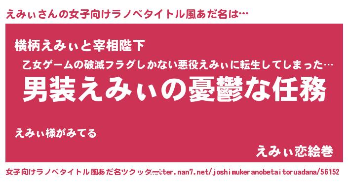 | 男性向けラノベタイトル風あだ名 | 『うちのえみぃが世界を掌握している!』 |