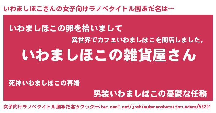 | 男性向けラノベタイトル風あだ名 | 『やはりいわましほこの青春ラブコメはまちがっている 』 |