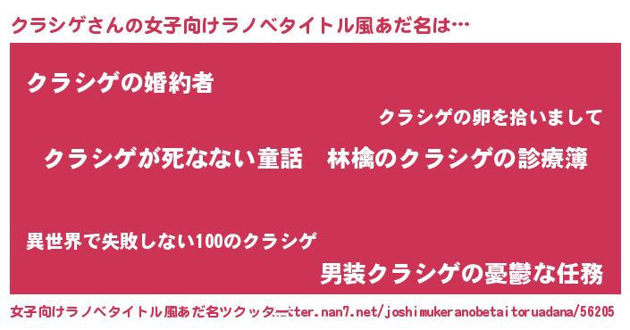 | 男性向けラノベタイトル風あだ名 | 『魔弾の王とクラシゲ』 |