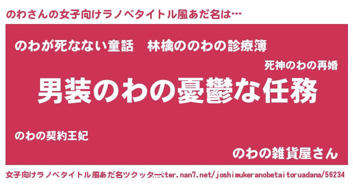 | 自動車の名前っぽいあだ名 | 『フェノーワ』『ノウディ』『ノクア』 |