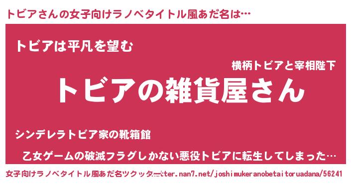 | 男性向けラノベタイトル風あだ名 | 『やはりトビアの青春ラブコメはまちがっている 』 |