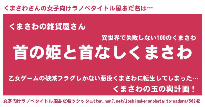 | 男性向けラノベタイトル風あだ名 | 『はたらくくまさわさま!』 |