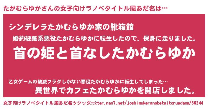 | 男性向けラノベタイトル風あだ名 | 『はたらくたかむらゆかさま!』 |