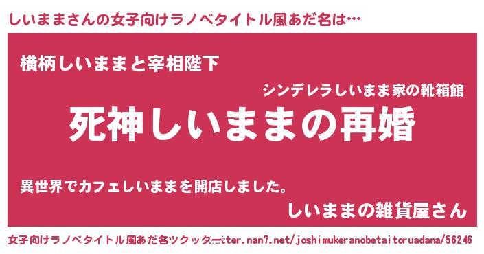 | 男性向けラノベタイトル風あだ名 | 『ノーゲーム・ノーシイママ』 |
