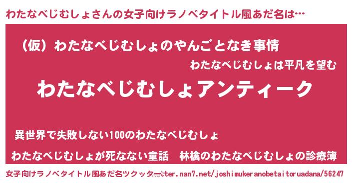 | 意味不明あだ名 | 『自称わたなべじむしょ』 |