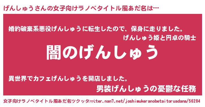 | 男性向けラノベタイトル風あだ名 | 『Re:げんしゅうから始める異世界生活』 |