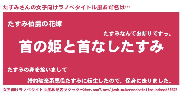 | 男性向けラノベタイトル風あだ名 | 『はたらくたすみさま!』 |