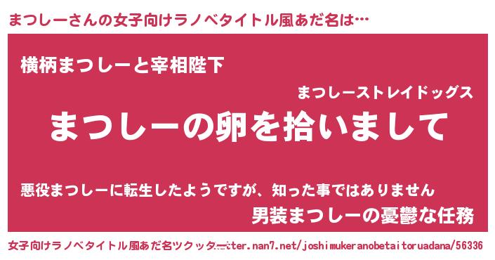 | 男性向けラノベタイトル風あだ名 | 『まつしーの嫁は女の子じゃないと思った?』 |