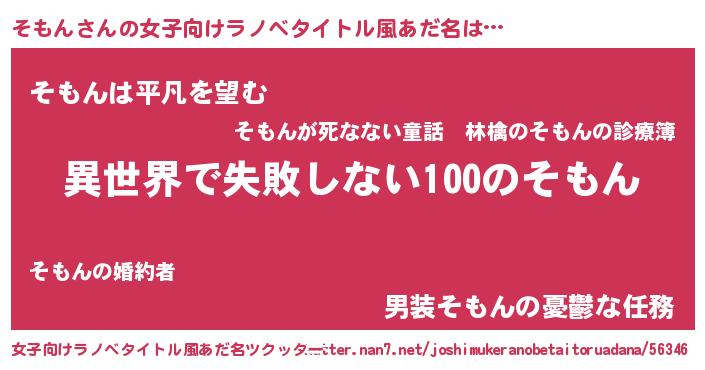 | ヘコむあだ名 | 『そもん(笑)』『そも太郎』 |