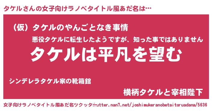 | 男性向けラノベタイトル風あだ名 | 『ダンジョンにタケルを求めるのは間違っているだろうか』 |
