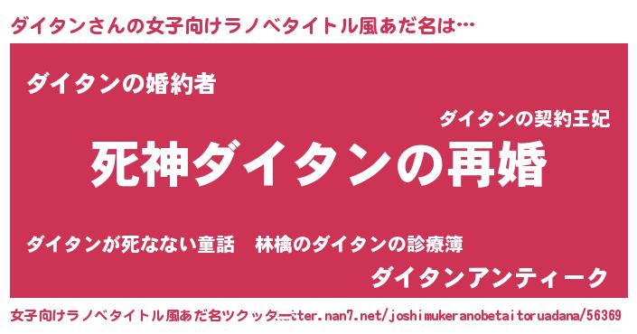 | 男性向けラノベタイトル風あだ名 | 『ノーゲーム・ノーダイタン』 |
