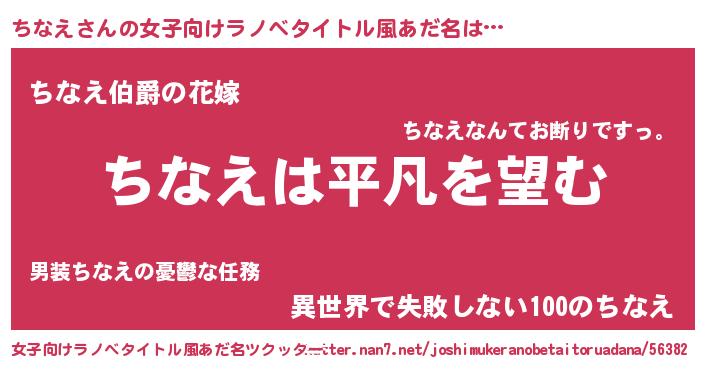 | 意味不明あだ名 | 『とにかく怪しいちなえ』『自称ちなえ』 |