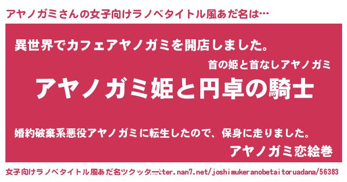 | 男性向けラノベタイトル風あだ名 | 『アヤノガミアートオンライン』 |