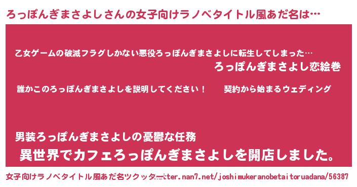 ろっぽんぎまさよしさんの女子向けラノベタイトル風あだ名
