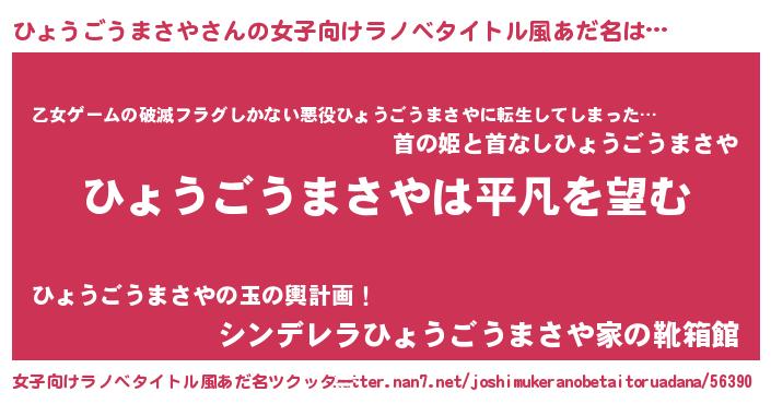 | 男性向けラノベタイトル風あだ名 | 『ダンジョンにひょうごうまさやを求めるのは間違っているだろうか』 |