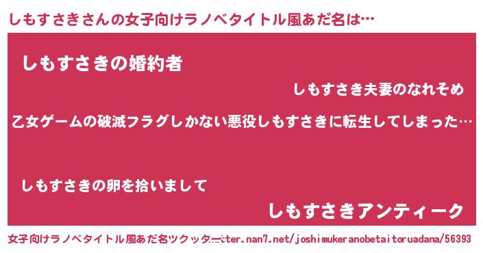 | 男性向けラノベタイトル風あだ名 | 『この素晴らしい世界にしもすさきを!』 |