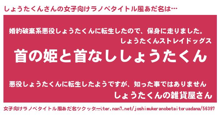 | 男性向けラノベタイトル風あだ名 | 『はたらくしょうたくんさま!』 |