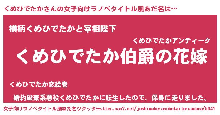 | ファンタジー風あだ名 | 『エターナルクメヒデタカー』 |