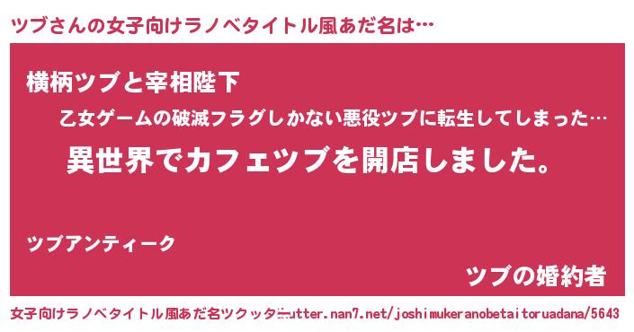 | 男性向けラノベタイトル風あだ名 | 『誰もが恐れるあのツブが、ぼくの専属メイドになるようです。』 |