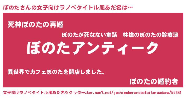| 男性向けラノベタイトル風あだ名 | 『魔法科高校のぼのた』 |