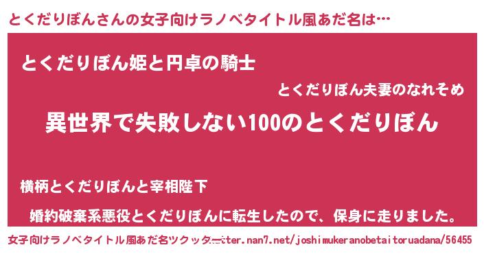 | 男性向けラノベタイトル風あだ名 | 『とくだりぼんという概念が存在しない退屈な世界 』 |