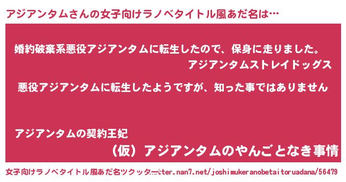 | 男性向けラノベタイトル風あだ名 | 『この素晴らしい世界にアジアンタムを!』 |