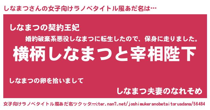 | 男性向けラノベタイトル風あだ名 | 『しなまつに滅ぼされるだけの簡単なお仕事です』 |