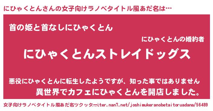 | 男性向けラノベタイトル風あだ名 | 『Re:にひゃくとんから始める異世界生活』 |
