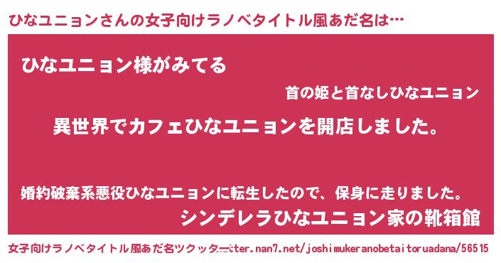 | 胡散臭い通販商品みたいなあだ名 | 『前代未聞の健康食品…その名も「ひなユニョン」』 |