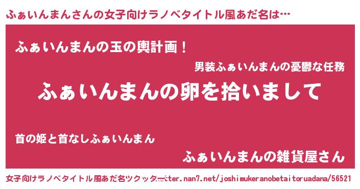 | 意味不明あだ名 | 『とにかく怪しいふぁいんまん』 |