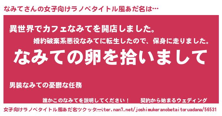 | 胡散臭い通販商品みたいなあだ名 | 『伝統あるサプリメント…その名も「なみて」』 |