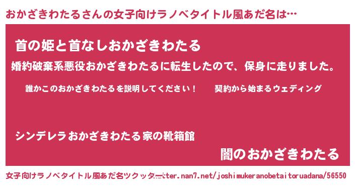 | 男性向けラノベタイトル風あだ名 | 『オカザキワタルアートオンライン』 |