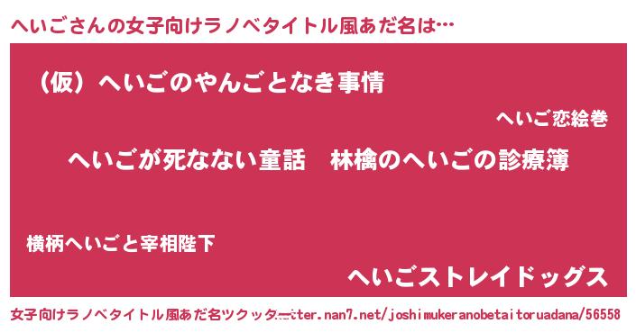 | 胡散臭い通販商品みたいなあだ名 | 『ハリウッド女優が絶賛した100年もののヴィンテージワイン…その名も「へいご」』 |