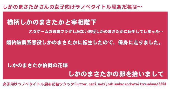 | 胡散臭い通販商品みたいなあだ名 | 『信頼と実績のサプリメント…その名も「しかのまさたか」』 |