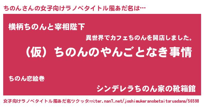 | 男性向けラノベタイトル風あだ名 | 『ちのんの憂鬱』『緋弾のチノン』 |