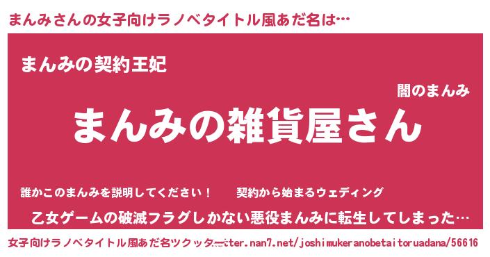 | 男性向けラノベタイトル風あだ名 | 『やはりまんみの青春ラブコメはまちがっている 』 |